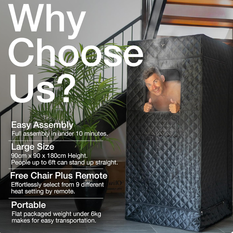 Spacious Comfort: Designed to fit up to 6ft standing or 7ft seated, this detox steam sauna gives you plenty of room. Enjoy a private, luxurious steam session without feeling cramped.